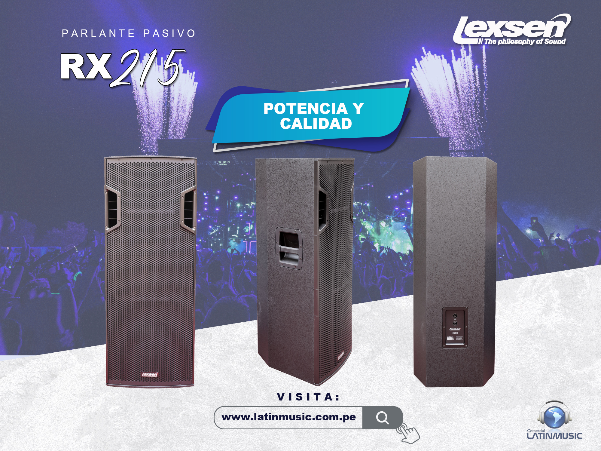 El parlante pasivo LEXSEN RX215 es exactamente lo que espera, capacidad de manejo de potencia de 4000 vatios, y absolutamente más asequible. Gracias al extremadamente potente motor de baja frecuencia (LF) de 15X2 «de larga excursión y el controlador de compresión de alta frecuencia (HF) de titanio y diafragma de 1,75» de última generación,  capaz de dar una acústica para 120 personas, llega listo para empujarlo el LEXSEN RX215 está destinado a convertirse en una leyenda por derecho propio, junto con otros modelos de LEXSEN que han convertido en el líder en altavoces
